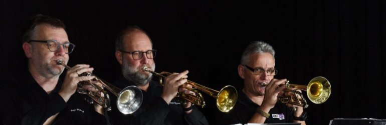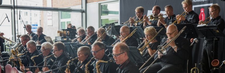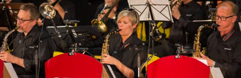 Såvel trompet-, trombone- og saxgruppen som rytmegruppen er fuldt besat.