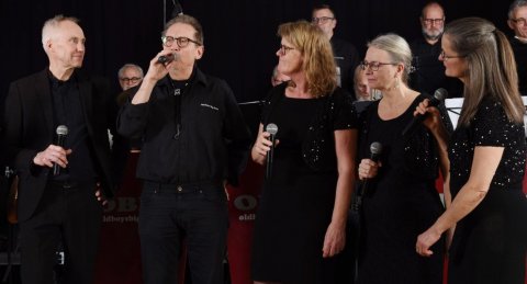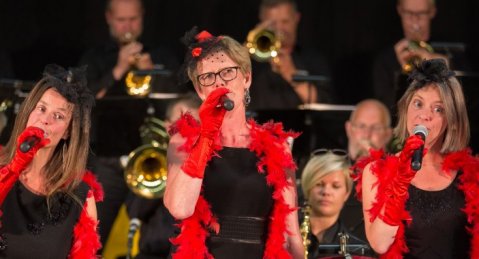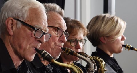 Old Boys Big Band tæller med musikere, sangere og lydmand omkring 30 mand fra trombone til picccolofløjte.